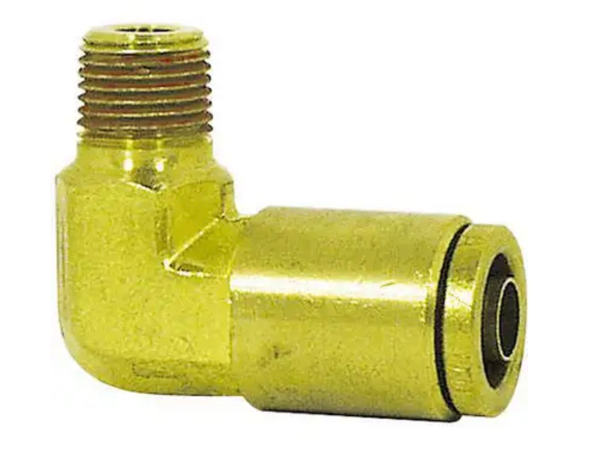 DOT Approved Brass Air Brake Push-To-Connect Male Elbow, 90 deg., 3/4 in. Tube OD x 3/4 in. Pipe Thread